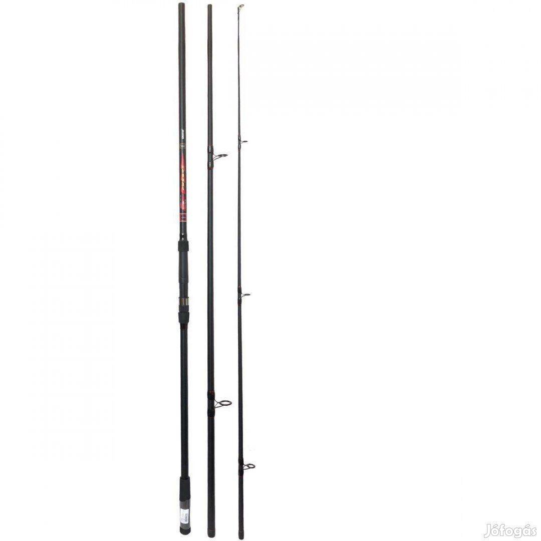 Az Eurostar D Max Fuegos CARP pontyozó bot nem csak kedvező árával hívja fel magára a figyelmet, hanem kiváló minőségével is. A kompozit bottest előnye,hogy az alacsony önsúly mellett is a végletekig terhelhető. A botot kiváló minőségű SIC gyűrűsorral szereltük fel a horgászzsinórok maximális védelme és a távdobások maximális távolsága érdekében. A botnyelet kényelmes fogású könnyen tisztítható csúszásmentes neoprén anyagból készítettük ami hideg időben csökkenti a hideg érzetet és csúszós etetőanyagos kézzel fogva sem csúszik. A bot 3 lbs dobósúlyú, a bot, nyél és a középső tagja kemény, így a nagyobb halak fárasztásakor is kellő ellenállást tudunk kifejteni. Ugyanakkor a spicc akciója alkalmassá teszi a vékonyabb, finomabb pontyozó szerelékek használatához is. Nagyméretű erős orsótartója a nagyobb orsók talpának befogására is tökéletesen alkalmas.
