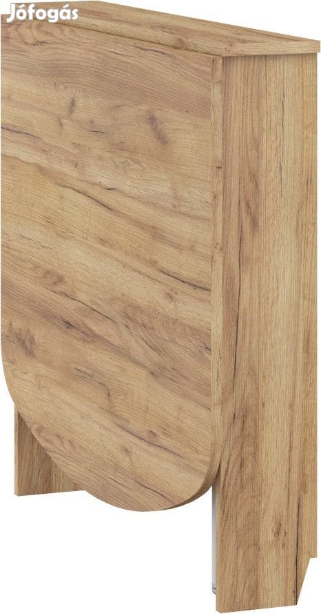 Helytakarékos, keskenyre összecsukható, falhoz szerelhető, 3-személyes étkezőasztal egyoldalas lehajtható kerekített asztallappal, arany tölgy színben. További információkért kattintson ide: