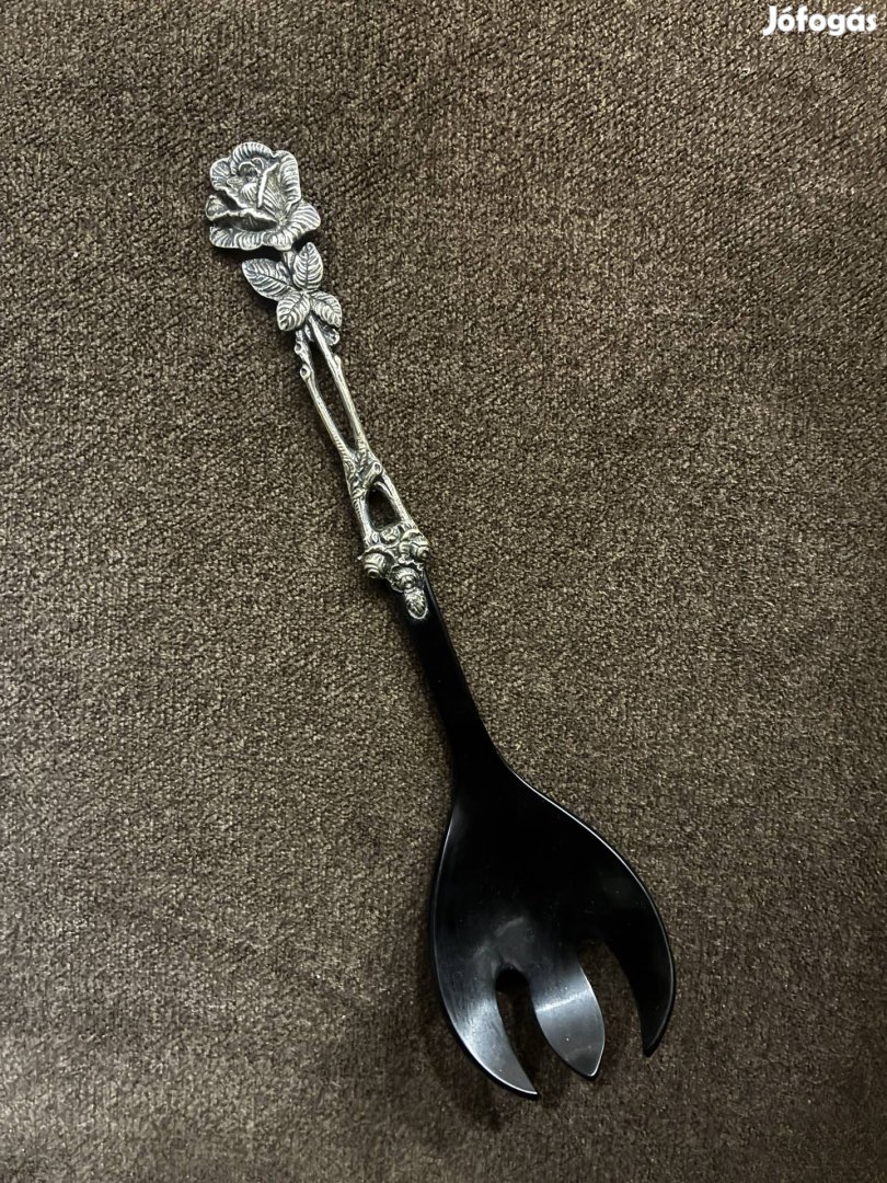 Ezüst nyelű villás kanál rózsa mintás nyéllel