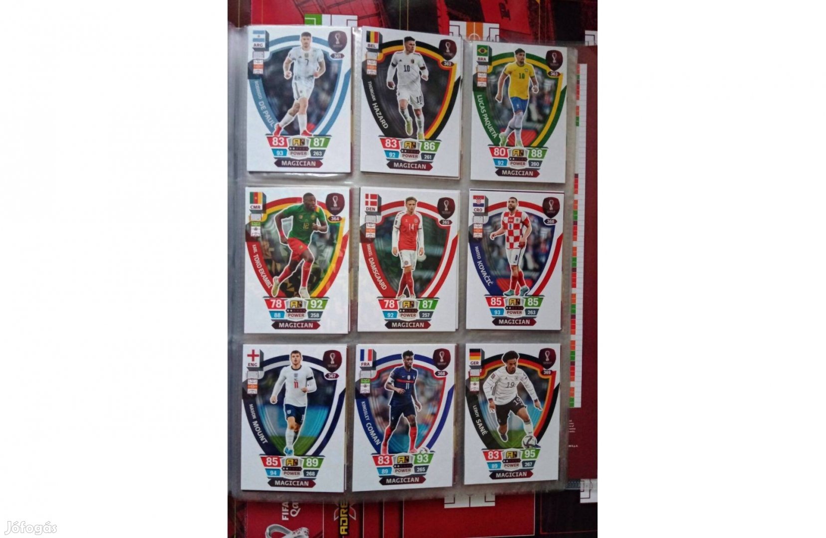 Eladó a képen látható Panini FIFA World Cup Qatar 2022 Adrenalyn XL Magician kártyák. Számok az ellenőrzőlista alapján: