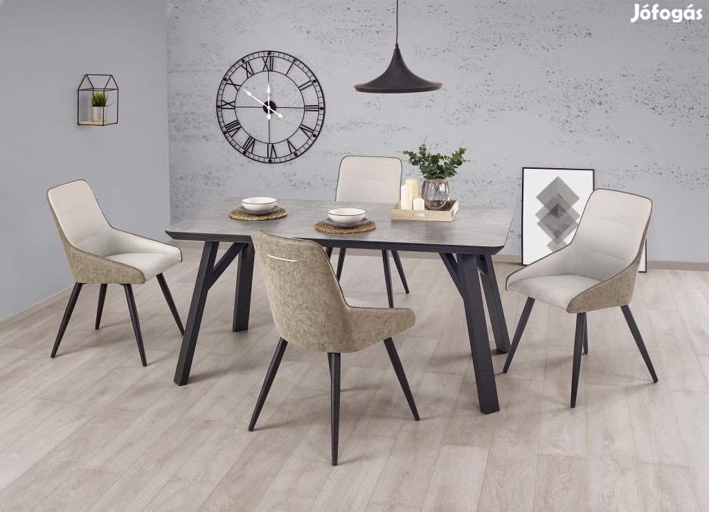 Az étkezőasztal színe beton, a lábak színe fekete.