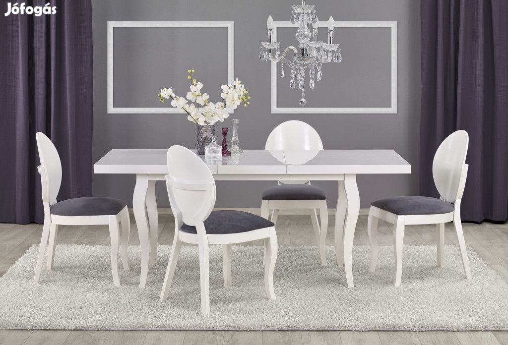 Az étkezőasztal kinyitható, megnagyobbítható, színe fehér.