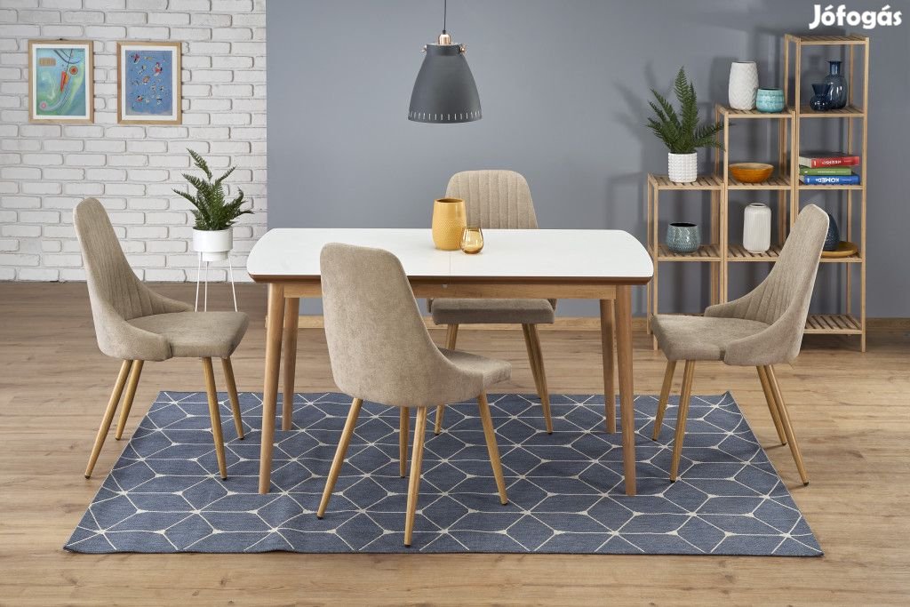 Az étkezőasztal színe matt fehér, a lábak színe lefkas tölgy.