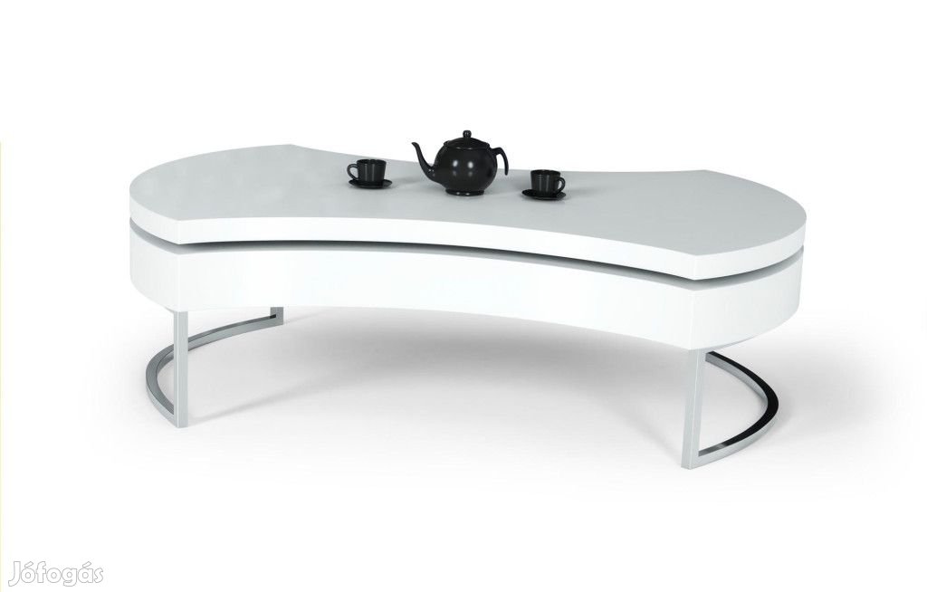 Ennek a masszív krómacél lábakon nyugvó, jellegzetes formával ellátott dohányzóasztalnak a mérete és dizájnja egy könnyű mozdulatsorral megváltoztatható.
