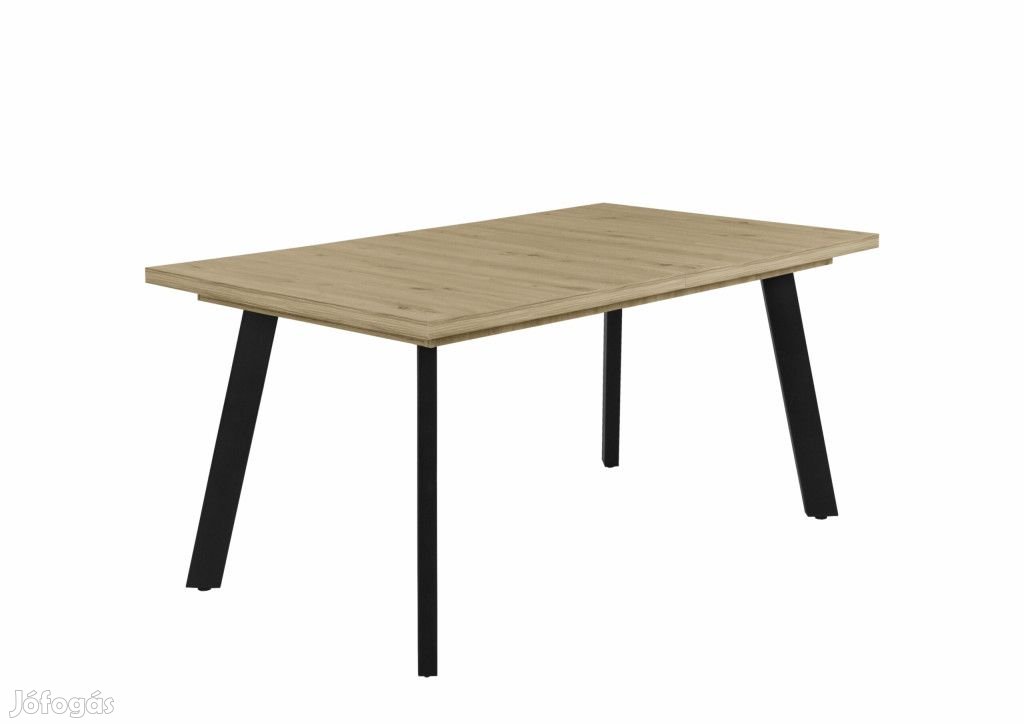 Kinyitható, megnagyobbítható fa asztallapos étkezőasztal fém lábakkal.