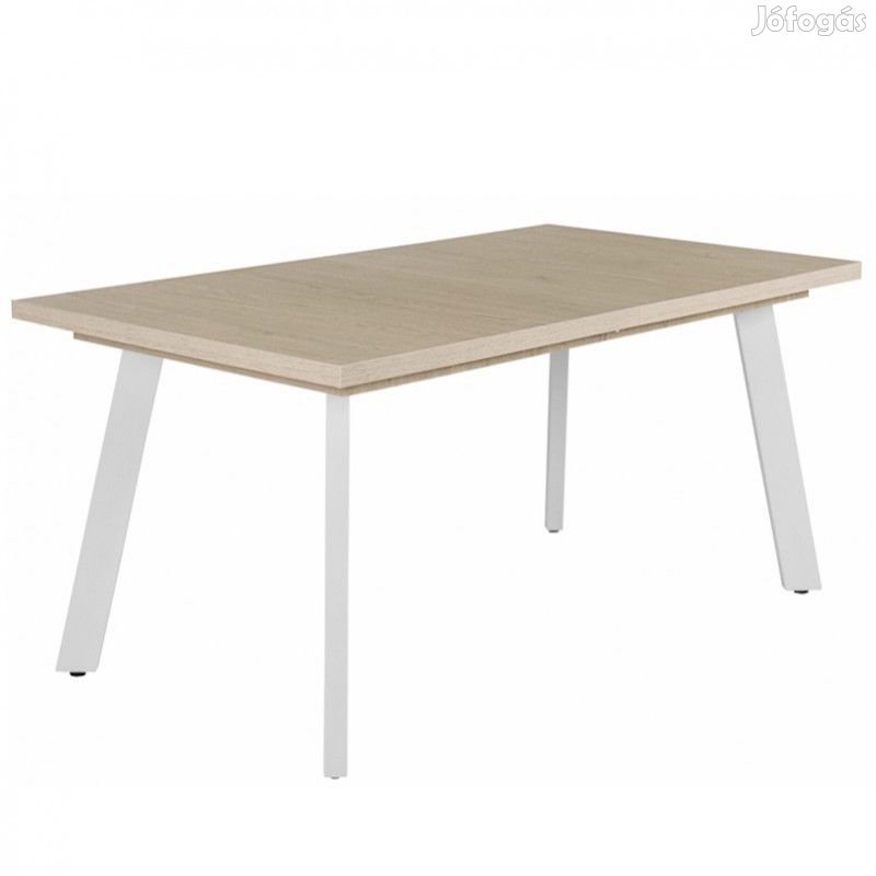 Fehér színű, állítható szögletes porfestett fém lábbal, és választható színű, megnagyobbítható, kinyitható duplungolt fa asztallappal rendelkező modern étkezőasztal.