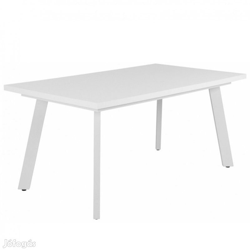 Fehér színű, állítható szögletes porfestett fém lábbal, és választható színű, megnagyobbítható, kinyitható duplungolt fa asztallappal rendelkező modern étkezőasztal.