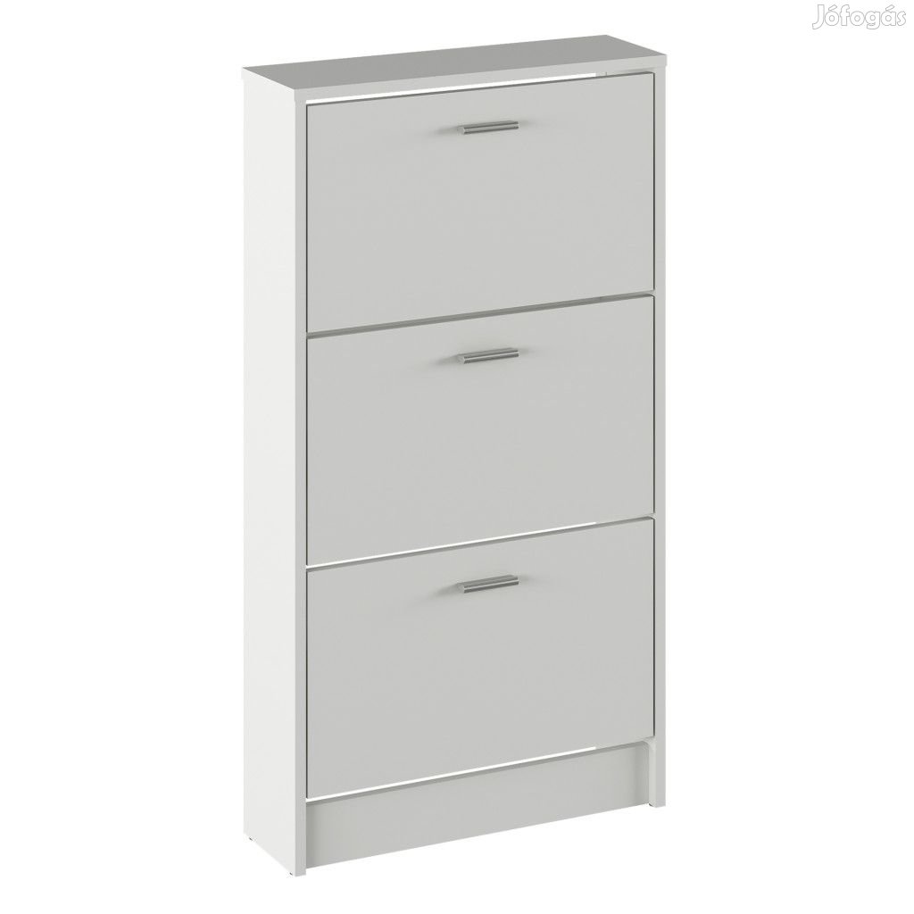 A cipősszekrény laminált forgácslapból készül, fehér színben. Elegendő tárhelyet biztosít három billenős fiók formájában.
