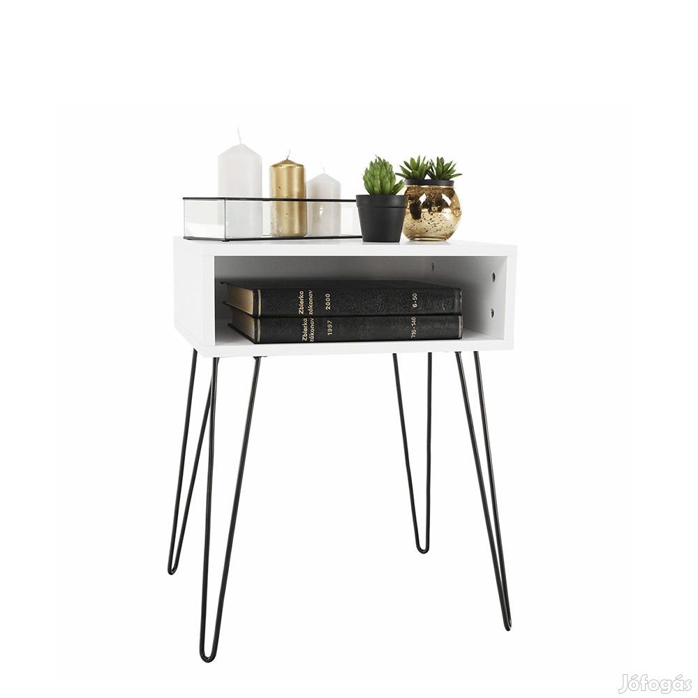 Fehér színű MDF-ből készült. Az asztal stabilitását a fekete fém lábak biztosítják. Elegancia és stílus.