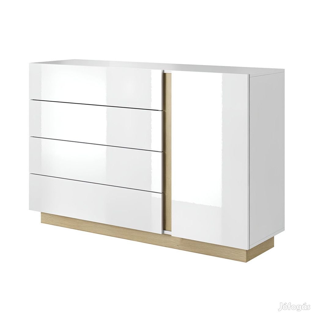 Ez a komód egyajtós, 4 fiókkal. Ha elegendő rakodóteret keres, amely a modern dizájnt képviseli, akkor éppen megtalálta. A 138 cm szélesség megoldja ruhái és más kiegészítői tárolásából adódó gondját.