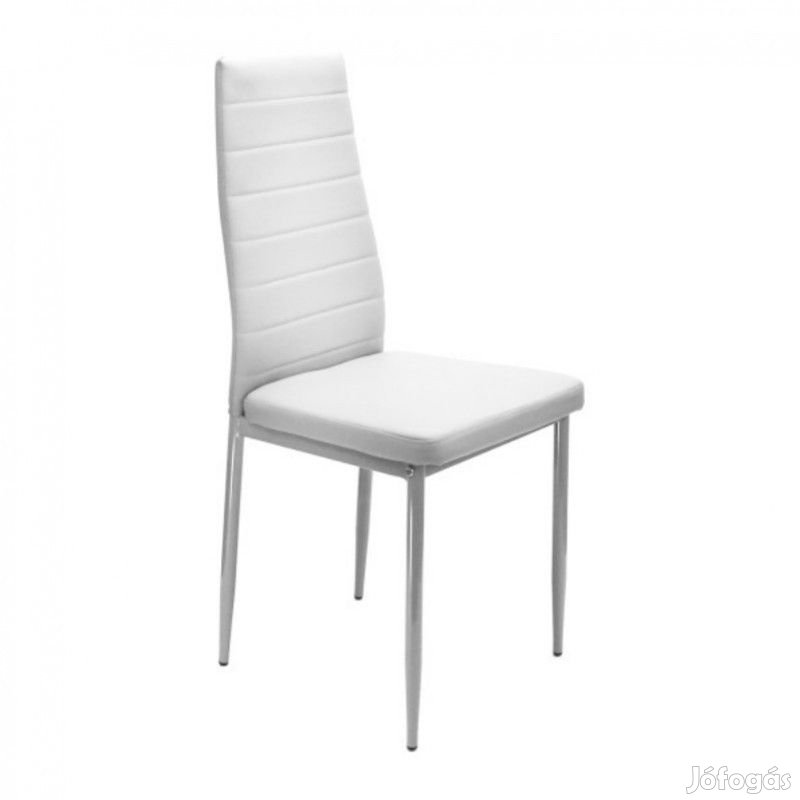 Műbőr kárpitozású ülőfelülettel és háttámlával, és festett fém vázzal illetve lábakkal készített fémvázas étkezőszék.