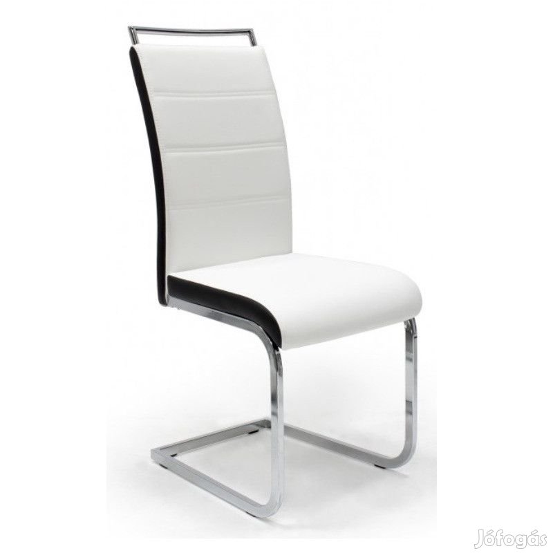 Az étkezőszék színe fehér, oldalán fekete díszcsíkkal.