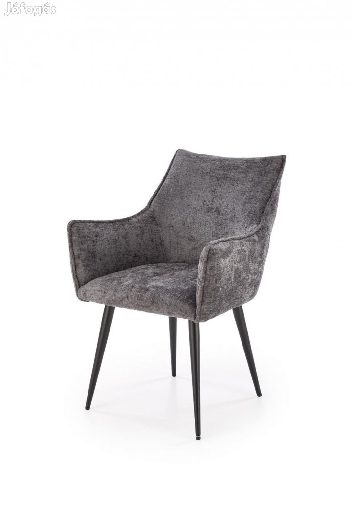A szürke színű szövet elegáns megjelenést kölcsönöz, mely könnyen illeszkedik a különböző enteriőr stílusokhoz. A kárpitozott ülőfelület kényelmet biztosít a hosszabb étkezések vagy beszélgetések során.