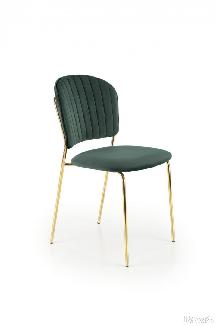 Az étkezőszék kárpitjának színe sötétzöld, a lábak színe arany.