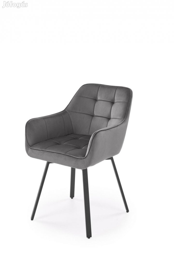 A szék kárpitjának színe szürke, a lábak színe fekete.