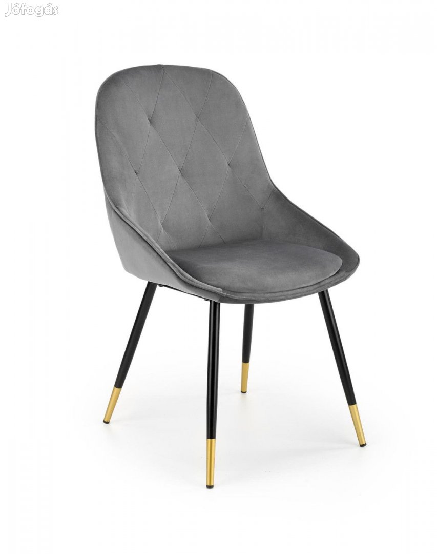 Az étkezőszék kárpitjának színe szürke, a lábak színe fekete és arany.