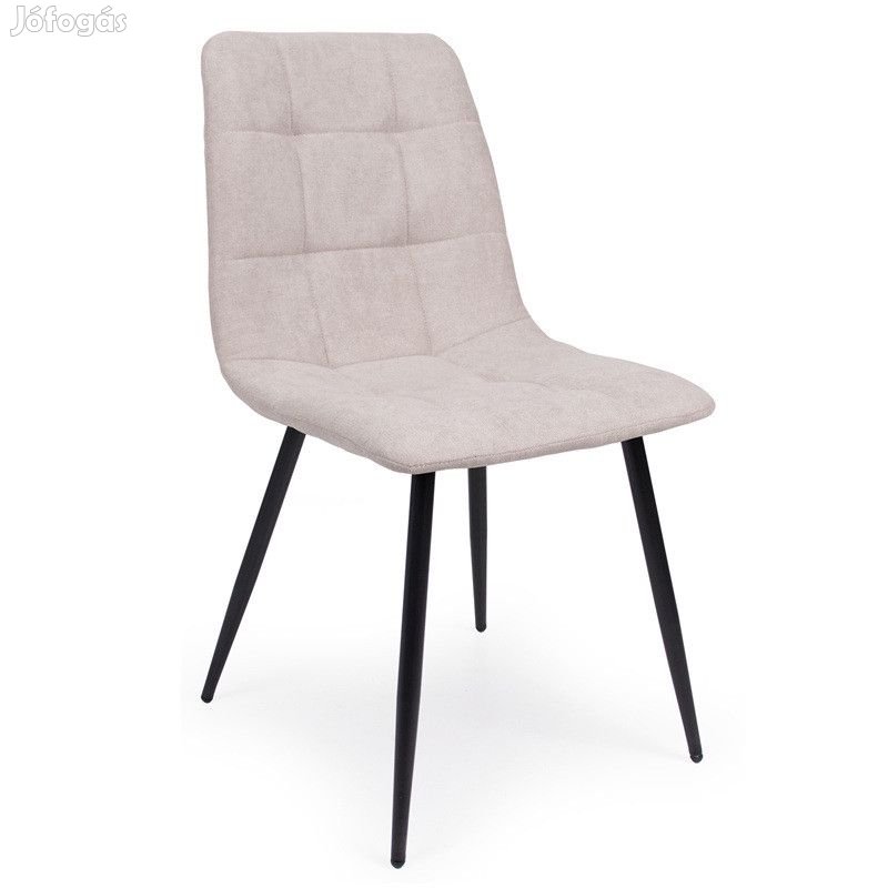 Ez a szék bézs színváltozatban, szövetből készült kárpittal, és fekete színű festett fém lábakkal kapható.