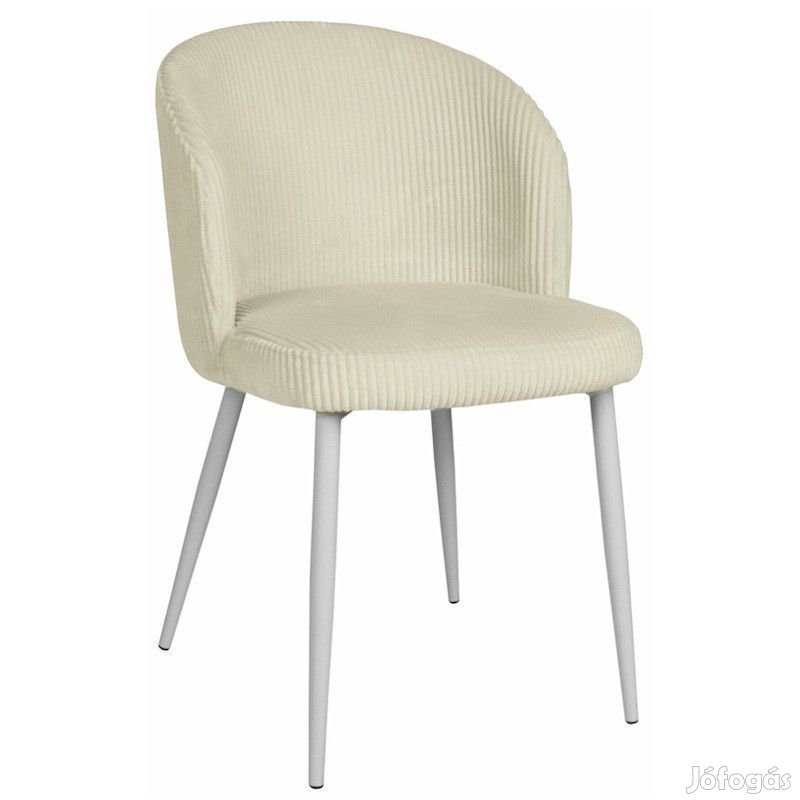 Ez az étkezőszékünk kordbársony szövet kárpittal rendelkezik. A szövetet fehér színű festett fém lábak teszik még elegánsabbá.