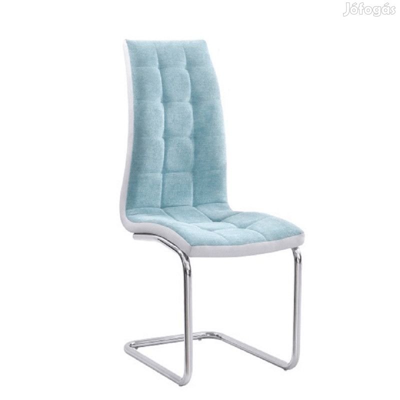 Az étkezőszék kárpitjának színe menta és szürke, a lábak színe króm.