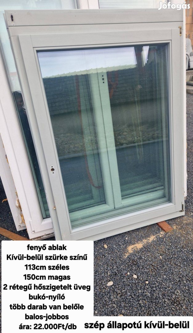 Eladó a képen látható bontott egyszárnyú fenyő ablak. Kívül-belül világos szürke színű, szép állapotú, 2rétegű hőszigetelt üveg, bukó-nyíló, kilincs jár hozzá.