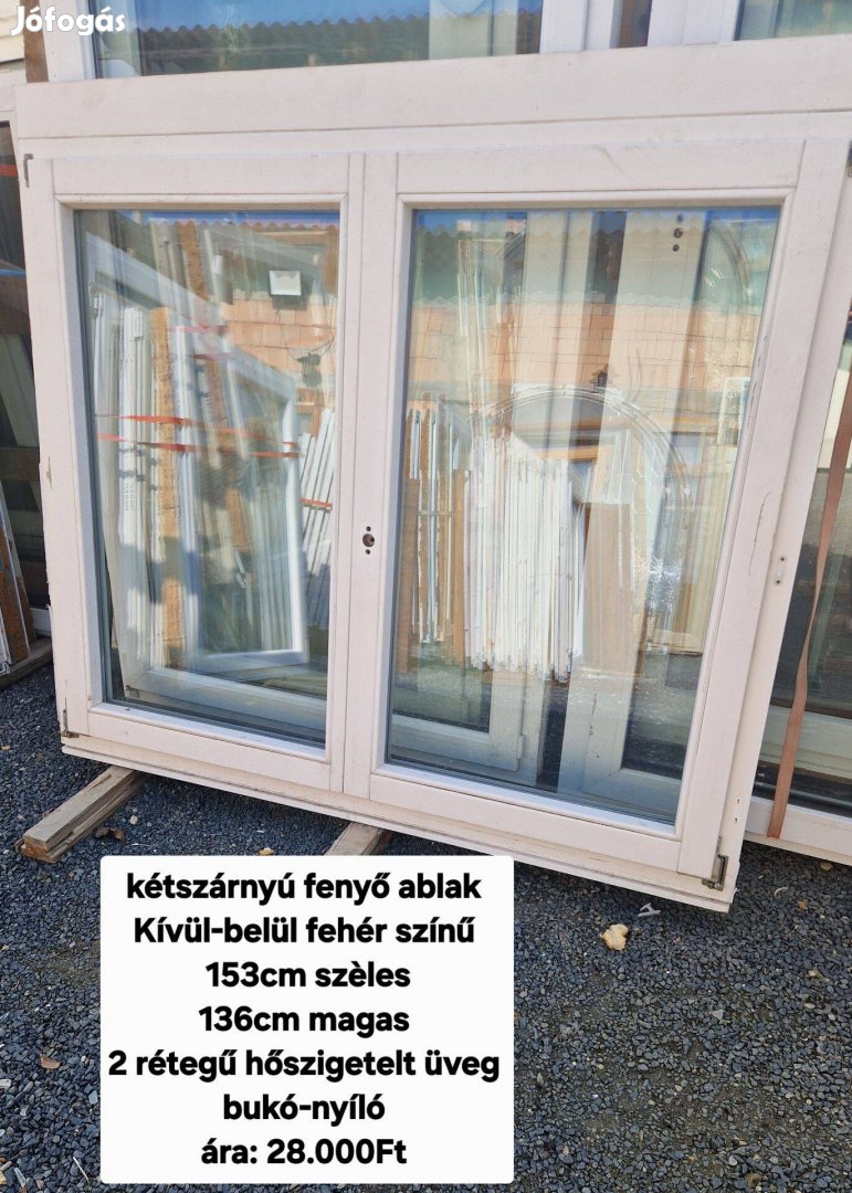 Eladó a képen látható bontott kétszárnyú fenyő ablak. Kívül-belül fehér színű, 2rétegű hőszigetelt üveg, bukó-nyíló, kilincs jár hozzá.