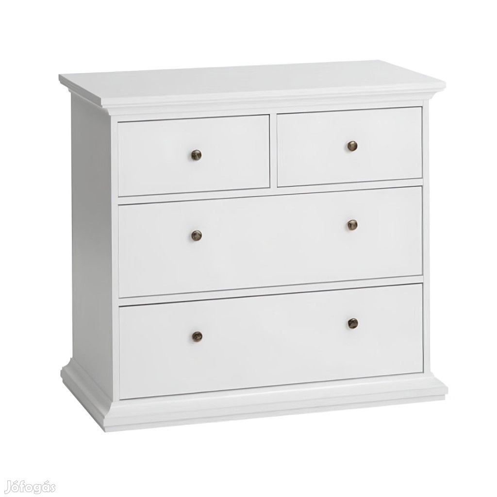 A komód 4 db fiókot tartalmaz, színe fehér.