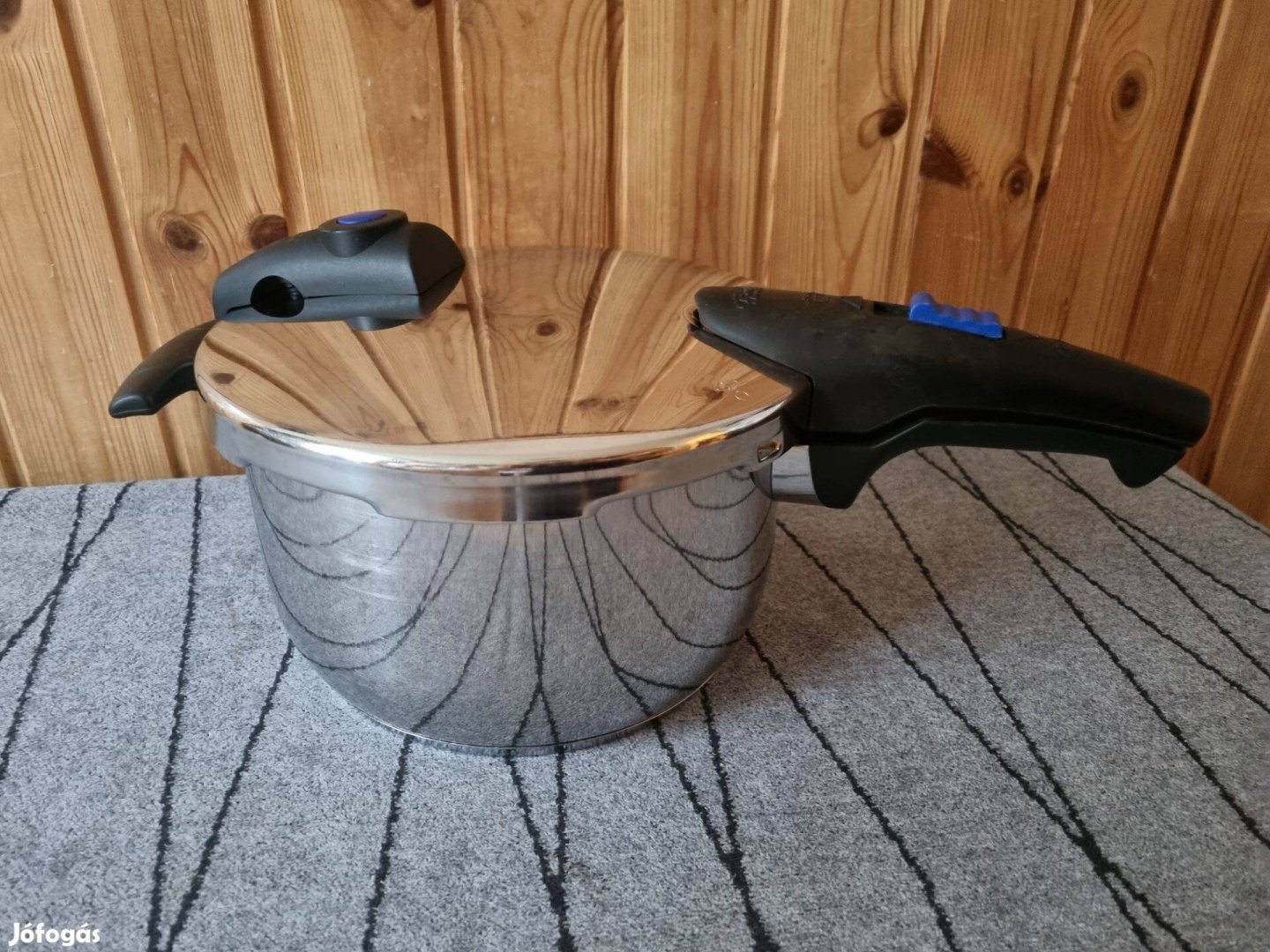 Eladó a képeken látható, jól működő, Fissler 4,5 literes indukciós kukta. Belső átmérője 22 cm, a tömítógumi akárcsak a kuktán, használt, de még jól zár.
