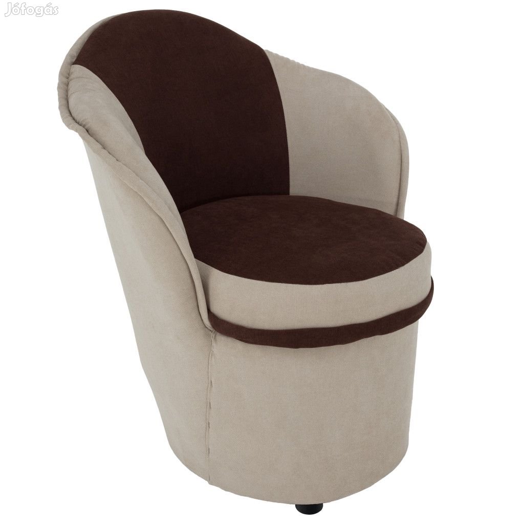 A fotel Soro szövettel teljesen kárpitozott, bézs és barna kombinációban. A magas háttámla, az elegánsan lekerekített karfa első osztályos kényelmet kínál.
