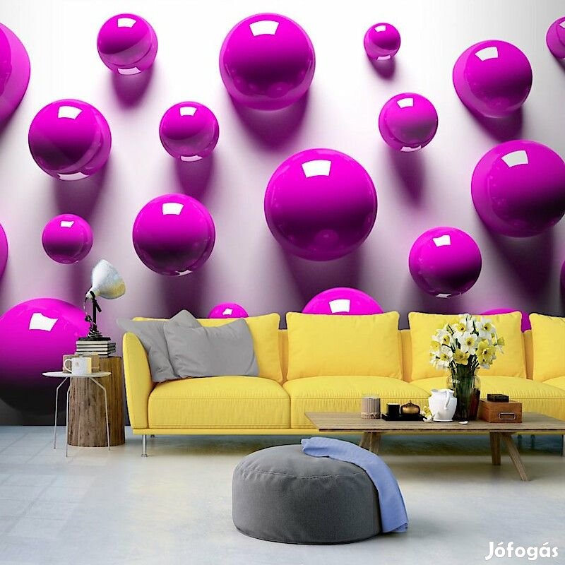 Tartós, víz és karcálló, falra ragasztható "Lila labdák" flíz fotótapéta. Az inspiráló motívummal ellátott "Lila labdák" című fotótapéta hatásosan díszít minden helyiséget. A flíz tapéták ragasztással kerülnek rögzítésre. Minden helyiségben felragasztható, még fürdőszobában vagy konyhában is. Flíz tapéta, fényes bevonat. A 100%-os flíz eltakarja a fal apró egyenetlenségeit. Egy melegítő szigetelő réteget alkot, de lehetővé teszi a fal lélegzését. A vízálló nyomtatás nagyon tartós.