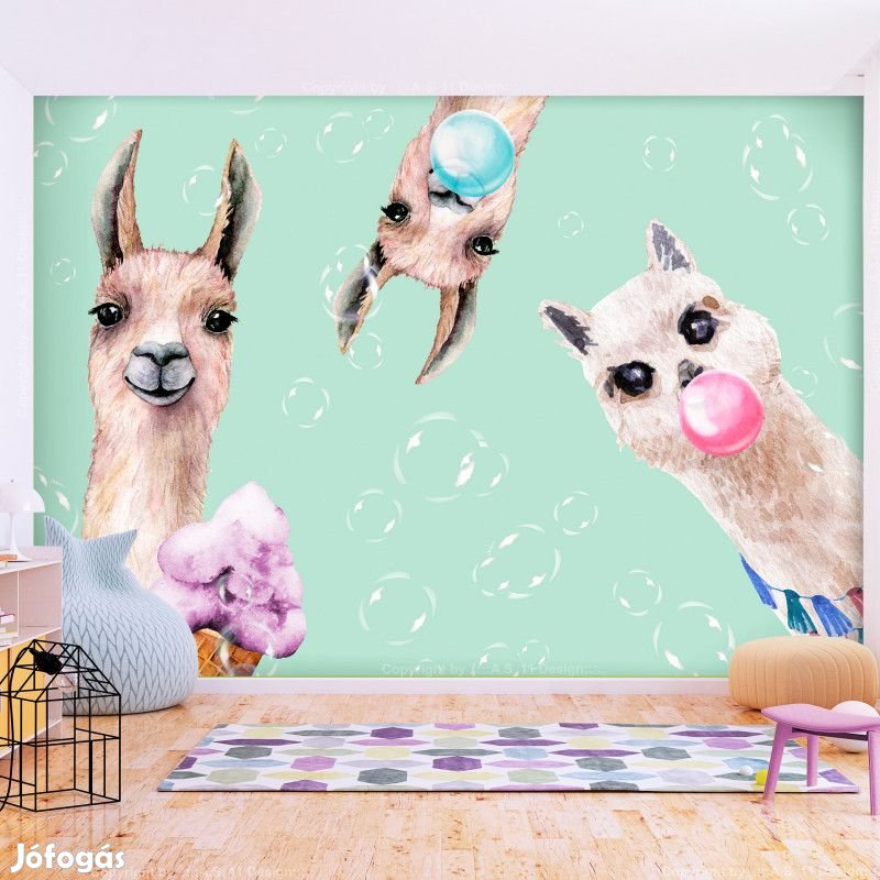 Tartós, víz és karcálló, falra ragasztható "Bugyuta lámák" flíz fotótapéta. Az inspiráló motívummal ellátott "Bugyuta lámák" című fotótapéta hatásosan díszít minden helyiséget. A flíz tapéták ragasztással kerülnek rögzítésre. Minden helyiségben felragasztható, még fürdőszobában vagy konyhában is. Flíz tapéta, fényes bevonat. A 100%-os flíz eltakarja a fal apró egyenetlenségeit. Egy melegítő szigetelő réteget alkot, de lehetővé teszi a fal lélegzését. A vízálló nyomtatás nagyon tartós.