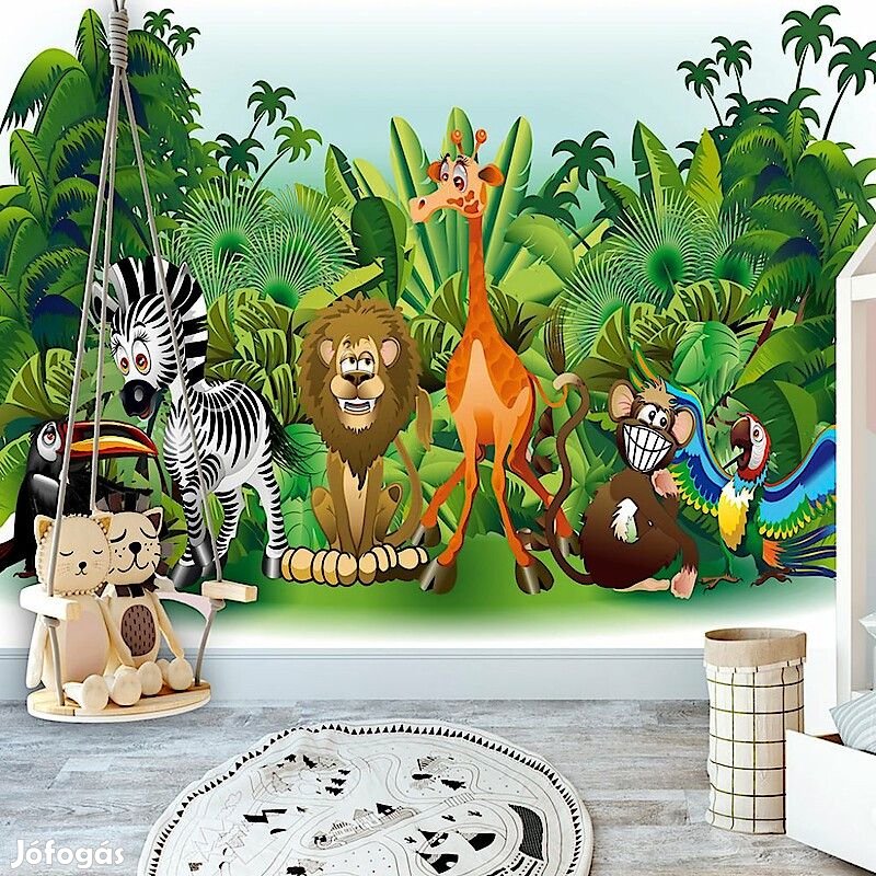 Tartós, víz és karcálló, falra ragasztható "Dzsungel állatok" flíz fotótapéta. Az inspiráló motívummal ellátott "Dzsungel állatok" című fotótapéta hatásosan díszít minden helyiséget. A flíz tapéták ragasztással kerülnek rögzítésre. Minden helyiségben felragasztható, még fürdőszobában vagy konyhában is. Flíz tapéta, fényes bevonat. A 100%-os flíz eltakarja a fal apró egyenetlenségeit. Egy melegítő szigetelő réteget alkot, de lehetővé teszi a fal lélegzését. A vízálló nyomtatás nagyon tartós.