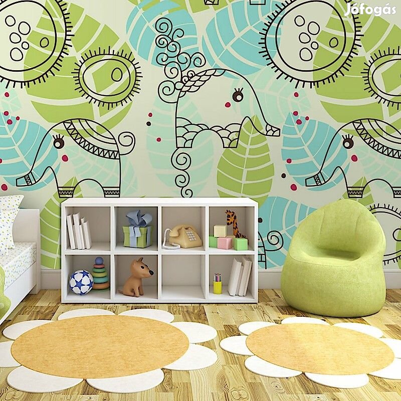 Tartós, víz és karcálló, falra ragasztható "Elefántok (gyerekeknek)" flíz fotótapéta. Az inspiráló motívummal ellátott Elefántok (gyerekeknek) című fotótapéta hatásosan díszít minden helyiséget. A flíz tapéták ragasztással kerülnek rögzítésre. Minden helyiségben felragasztható, még fürdőszobában vagy konyhában is. Flíz tapéta, fényes bevonat. A 100%-os flíz eltakarja a fal apró egyenetlenségeit. Egy melegítő szigetelő réteget alkot, de lehetővé teszi a fal lélegzését. A vízálló nyomtatás nagyon tartós.