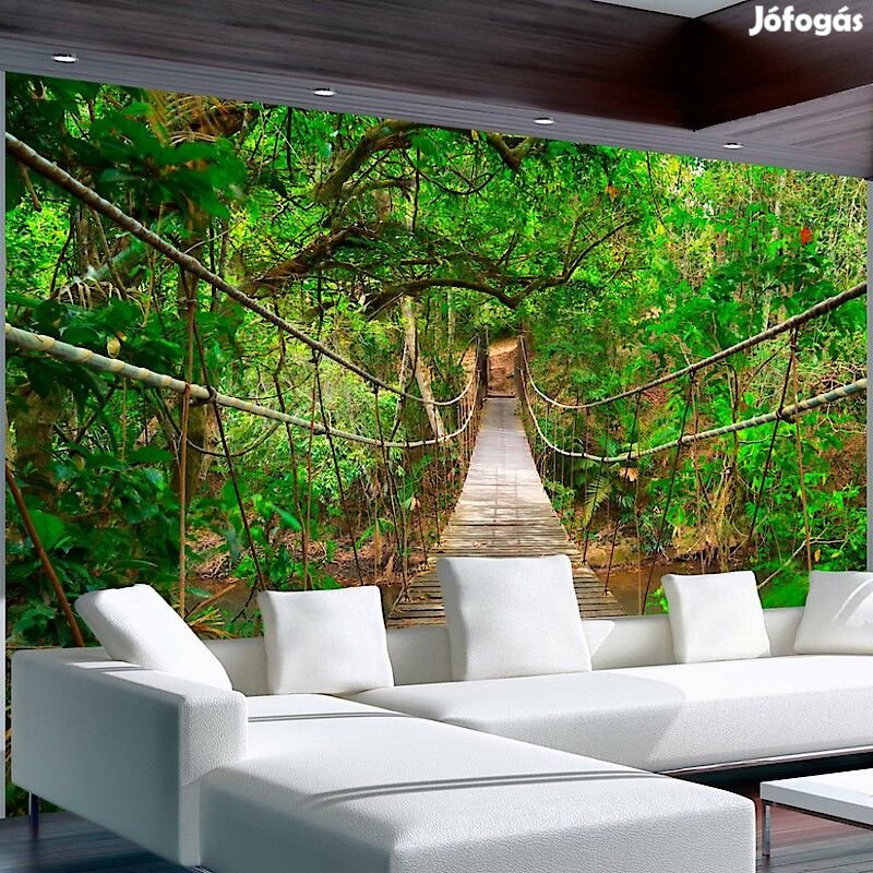 Tartós, víz és karcálló, falra ragasztható "Függőhídon" flíz fotótapéta. Az inspiráló motívummal ellátott Függőhídon című fotótapéta hatásosan díszít minden helyiséget. A flíz tapéták ragasztással kerülnek rögzítésre. Minden helyiségben felragasztható, még fürdőszobában vagy konyhában is. Flíz tapéta, fényes bevonat. A 100%-os flíz eltakarja a fal apró egyenetlenségeit. Egy melegítő szigetelő réteget alkot, de lehetővé teszi a fal lélegzését. A vízálló nyomtatás nagyon tartós.