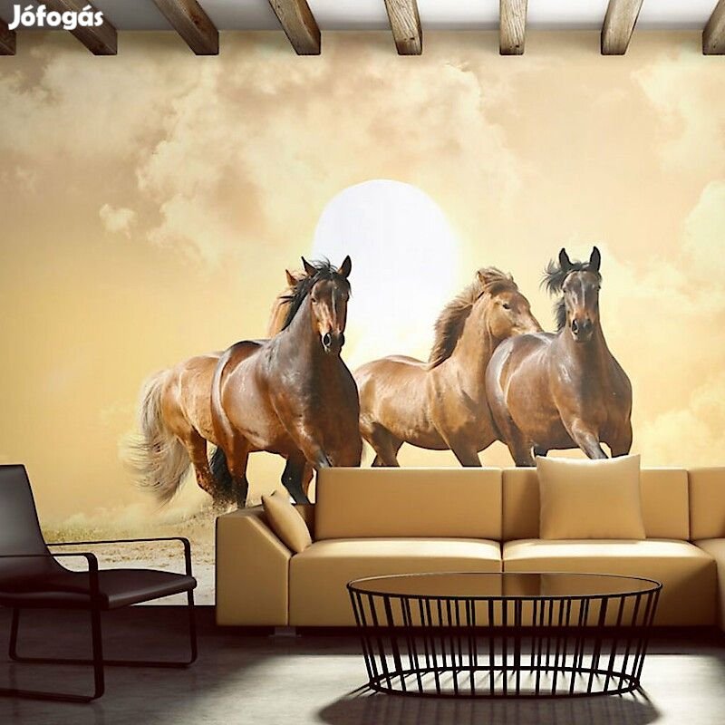 Tartós, víz és karcálló, falra ragasztható "Futás lovak" flíz fotótapéta. Az inspiráló motívummal ellátott Futás lovak című fotótapéta hatásosan díszít minden helyiséget. A flíz tapéták ragasztással kerülnek rögzítésre. Minden helyiségben felragasztható, még fürdőszobában vagy konyhában is. Flíz tapéta, fényes bevonat. A 100%-os flíz eltakarja a fal apró egyenetlenségeit. Egy melegítő szigetelő réteget alkot, de lehetővé teszi a fal lélegzését. A vízálló nyomtatás nagyon tartós.