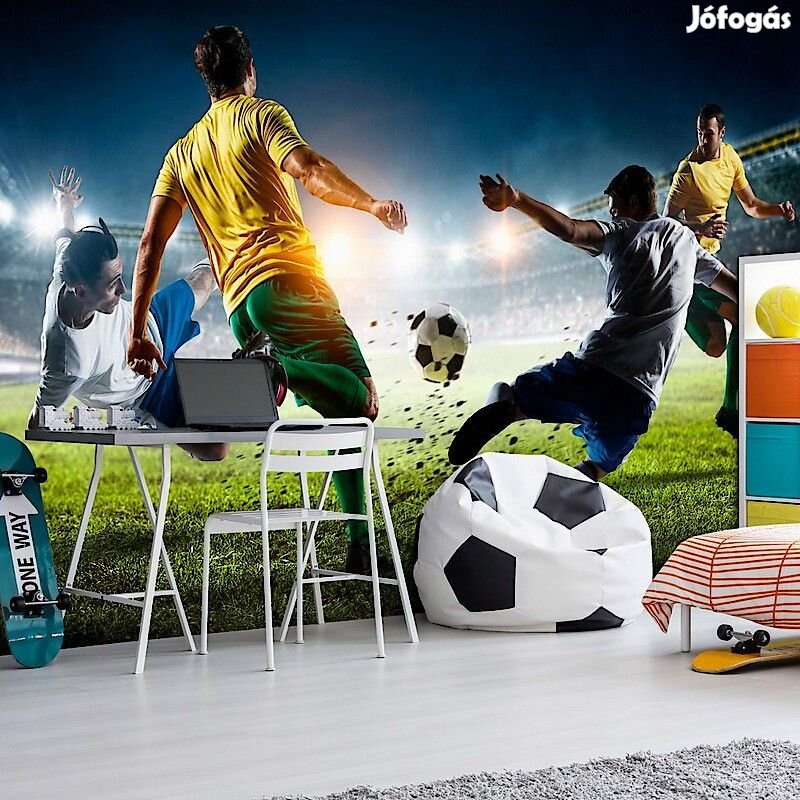 Tartós, víz és karcálló, falra ragasztható "Futballjáték" flíz fotótapéta. Az inspiráló motívummal ellátott "Futballjáték" című fotótapéta hatásosan díszít minden helyiséget. A flíz tapéták ragasztással kerülnek rögzítésre. Minden helyiségben felragasztható, még fürdőszobában vagy konyhában is. Flíz tapéta, fényes bevonat. A 100%-os flíz eltakarja a fal apró egyenetlenségeit. Egy melegítő szigetelő réteget alkot, de lehetővé teszi a fal lélegzését. A vízálló nyomtatás nagyon tartós.