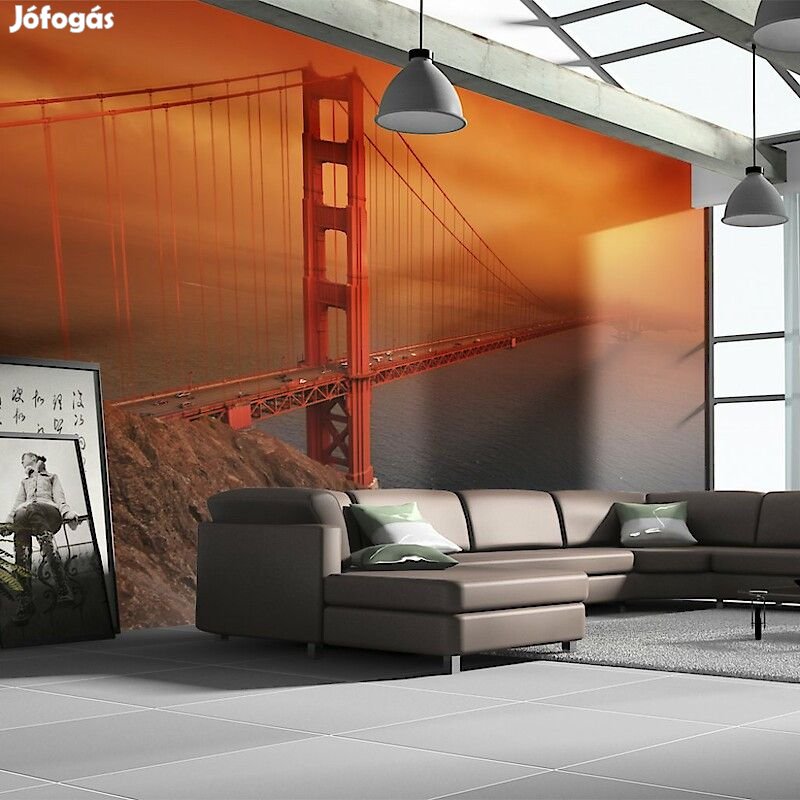 400x309: 50x309 50x309 50x309 50x309 50x309 50x309 50x309 50x309Tartós, víz és karcálló, falra ragasztható "Golden Gate a hajnali fényben" flíz fotótapéta. Az inspiráló motívummal ellátott Golden Gate a hajnali fényben című fotótapéta hatásosan díszít minden helyiséget. A flíz tapéták ragasztással kerülnek rögzítésre. Minden helyiségben felragasztható, még fürdőszobában vagy konyhában is. Flíz tapéta, fényes bevonat. A 100%-os flíz eltakarja a fal apró egyenetlenségeit. Egy melegítő szigetelő réteget alkot, de lehetővé teszi a fal lélegzését. A vízálló nyomtatás nagyon tartós.Magas minőségű nyomtatásAz egyedi technológiájú 600 dpi felbontású digitális nyomtatás, valamint az élénk színek azt eredményezik, hogy a flíz fotótapéta kitölti és megnagyobbítja az Ön házának belsejét.Egyszerű felszerelésA fotótapéta könnyedén rögzíthető, 50 cm-es sávokból rakódik össze.Környezetbarát és biztonságosA biztonságos anyagok használatára való tekintettel mintáinkat a hálószobádba, valamint a gyermekeid szobájába is tudjuk ajánlani.Biztonságos csomagolásA fotótapéta fel van tekerve és gyárilag egy kartontubusba van csomagolva, mely biztonságossá teszi a szállítást. Mindegyik tubus tartalmazza a felragasztásra vonatkozó utasításokat.Súly: 120 g/m2