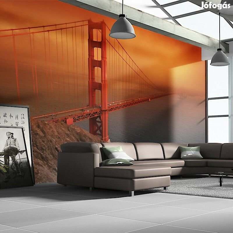 400x309: 50x309 50x309 50x309 50x309 50x309 50x309 50x309 50x309Tartós, víz és karcálló, falra ragasztható "Golden Gate a hajnali fényben" flíz fotótapéta. Az inspiráló motívummal ellátott Golden Gate a hajnali fényben című fotótapéta hatásosan díszít minden helyiséget. A flíz tapéták ragasztással kerülnek rögzítésre. Minden helyiségben felragasztható, még fürdőszobában vagy konyhában is. Flíz tapéta, fényes bevonat. A 100%-os flíz eltakarja a fal apró egyenetlenségeit. Egy melegítő szigetelő réteget alkot, de lehetővé teszi a fal lélegzését. A vízálló nyomtatás nagyon tartós.Magas minőségű nyomtatásAz egyedi technológiájú 600 dpi felbontású digitális nyomtatás, valamint az élénk színek azt eredményezik, hogy a flíz fotótapéta kitölti és megnagyobbítja az Ön házának belsejét.Egyszerű felszerelésA fotótapéta könnyedén rögzíthető, 50 cm-es sávokból rakódik össze.Környezetbarát és biztonságosA biztonságos anyagok használatára való tekintettel mintáinkat a hálószobádba, valamint a gyermekeid szobájába is tudjuk ajánlani.Biztonságos csomagolásA fotótapéta fel van tekerve és gyárilag egy kartontubusba van csomagolva, mely biztonságossá teszi a szállítást. Mindegyik tubus tartalmazza a felragasztásra vonatkozó utasításokat.Súly: 120 g/m2