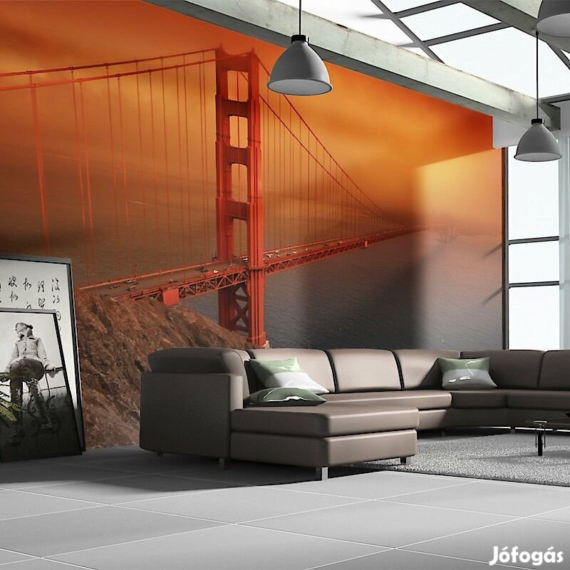 400x309: 50x309 50x309 50x309 50x309 50x309 50x309 50x309 50x309Tartós, víz és karcálló, falra ragasztható "Golden Gate a hajnali fényben" flíz fotótapéta. Az inspiráló motívummal ellátott Golden Gate a hajnali fényben című fotótapéta hatásosan díszít minden helyiséget. A flíz tapéták ragasztással kerülnek rögzítésre. Minden helyiségben felragasztható, még fürdőszobában vagy konyhában is. Flíz tapéta, fényes bevonat. A 100%-os flíz eltakarja a fal apró egyenetlenségeit. Egy melegítő szigetelő réteget alkot, de lehetővé teszi a fal lélegzését. A vízálló nyomtatás nagyon tartós.Magas minőségű nyomtatásAz egyedi technológiájú 600 dpi felbontású digitális nyomtatás, valamint az élénk színek azt eredményezik, hogy a flíz fotótapéta kitölti és megnagyobbítja az Ön házának belsejét.Egyszerű felszerelésA fotótapéta könnyedén rögzíthető, 50 cm-es sávokból rakódik össze.Környezetbarát és biztonságosA biztonságos anyagok használatára való tekintettel mintáinkat a hálószobádba, valamint a gyermekeid szobájába is tudjuk ajánlani.Biztonságos csomagolásA fotótapéta fel van tekerve és gyárilag egy kartontubusba van csomagolva, mely biztonságossá teszi a szállítást. Mindegyik tubus tartalmazza a felragasztásra vonatkozó utasításokat.Súly: 120 g/m2
