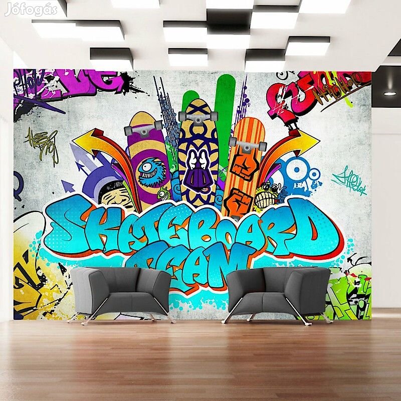 400x280: 50x280 50x280 50x280 50x280 50x280 50x280 50x280 50x280Tartós, víz és karcálló, falra ragasztható "Gördeszkás csapat" flíz fotótapéta. Az inspiráló motívummal ellátott Gördeszkás csapat című fotótapéta hatásosan díszít minden helyiséget. A flíz tapéták ragasztással kerülnek rögzítésre. Minden helyiségben felragasztható, még fürdőszobában vagy konyhában is. Flíz tapéta, fényes bevonat. A 100%-os flíz eltakarja a fal apró egyenetlenségeit. Egy melegítő szigetelő réteget alkot, de lehetővé teszi a fal lélegzését. A vízálló nyomtatás nagyon tartós.Magas minőségű nyomtatásAz egyedi technológiájú 600 dpi felbontású digitális nyomtatás, valamint az élénk színek azt eredményezik, hogy a flíz fotótapéta kitölti és megnagyobbítja az Ön házának belsejét.Egyszerű felszerelésA fotótapéta könnyedén rögzíthető, 50 cm-es sávokból rakódik össze.Környezetbarát és biztonságosA biztonságos anyagok használatára való tekintettel mintáinkat a hálószobádba, valamint a gyermekeid szobájába is tudjuk ajánlani.Biztonságos csomagolásA fotótapéta fel van tekerve és gyárilag egy kartontubusba van csomagolva, mely biztonságossá teszi a szállítást. Mindegyik tubus tartalmazza a felragasztásra vonatkozó utasításokat.Súly: 120 g/m2