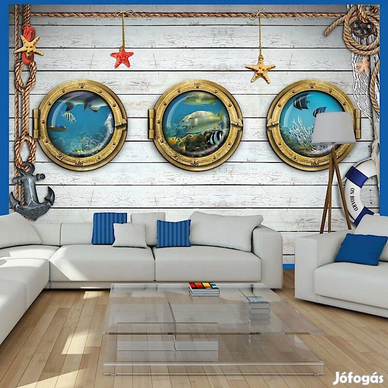 Tartós, víz és karcálló, falra ragasztható "Hajóablakok 2" flíz fotótapéta. Az inspiráló motívummal ellátott "Hajóablakok 2" című fotótapéta hatásosan díszít minden helyiséget. A flíz tapéták ragasztással kerülnek rögzítésre. Minden helyiségben felragasztható, még fürdőszobában vagy konyhában is. Flíz tapéta, fényes bevonat. A 100%-os flíz eltakarja a fal apró egyenetlenségeit. Egy melegítő szigetelő réteget alkot, de lehetővé teszi a fal lélegzését. A vízálló nyomtatás nagyon tartós.