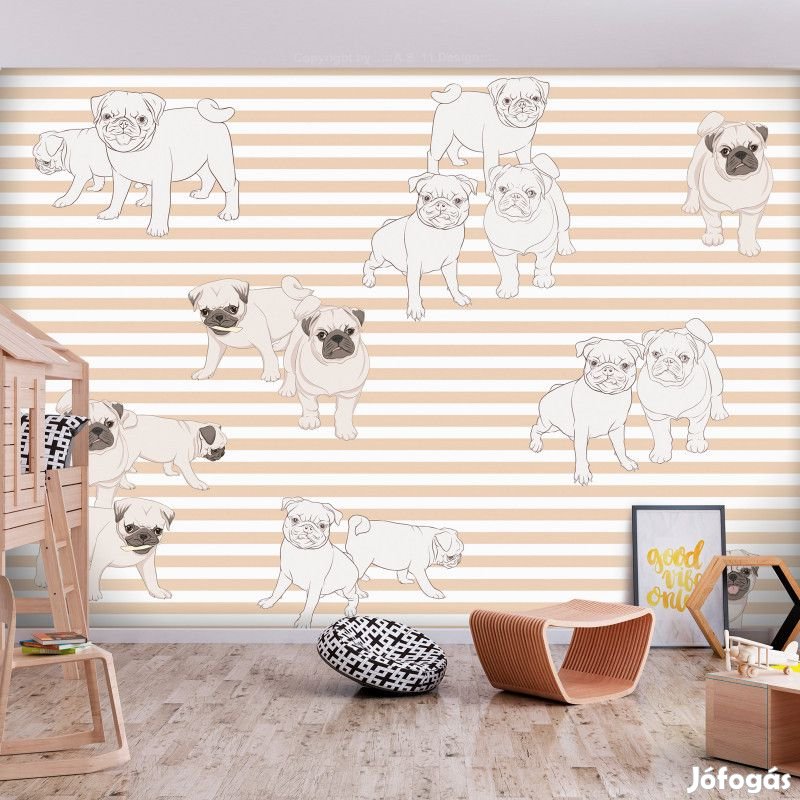 Tartós, víz és karcálló, falra ragasztható "Játszadozó kutyák" flíz fotótapéta. Az inspiráló motívummal ellátott "Játszadozó kutyák" című fotótapéta hatásosan díszít minden helyiséget. A flíz tapéták ragasztással kerülnek rögzítésre. Minden helyiségben felragasztható, még fürdőszobában vagy konyhában is. Flíz tapéta, fényes bevonat. A 100%-os flíz eltakarja a fal apró egyenetlenségeit. Egy melegítő szigetelő réteget alkot, de lehetővé teszi a fal lélegzését. A vízálló nyomtatás nagyon tartós.