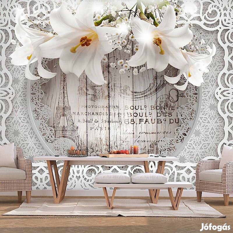 Nézd meg lépésről-lépésre, hogy hogyan kell felhelyezni az "Liliomok fa háttérrel" fotótapétát.