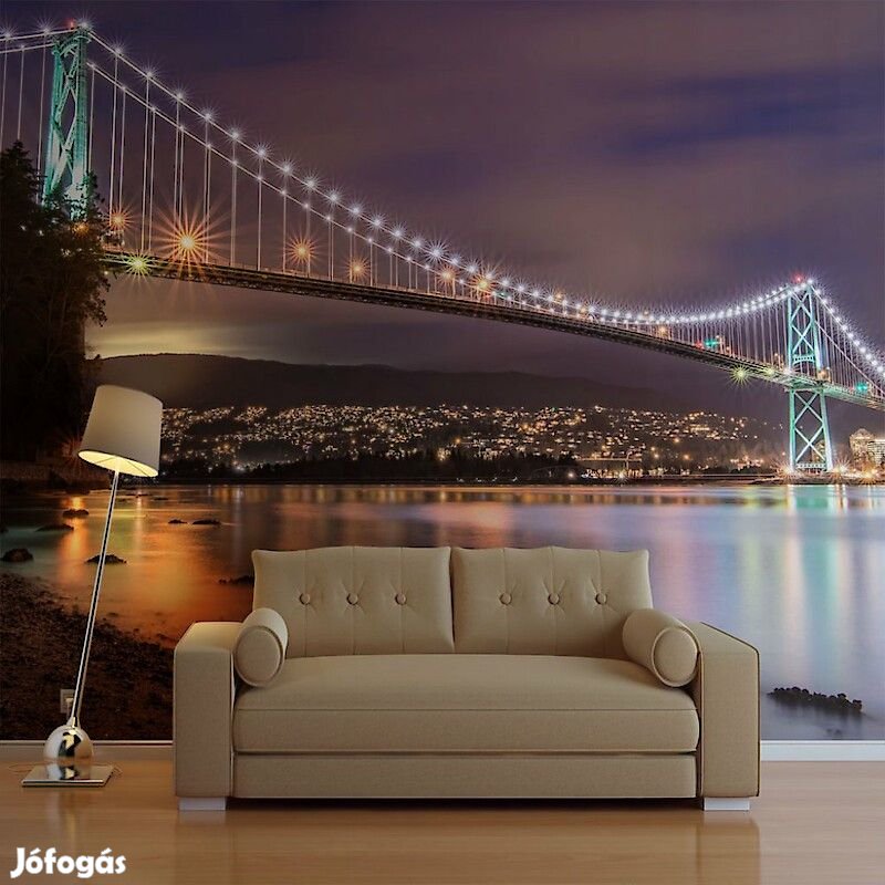 400x309: 50x309 50x309 50x309 50x309 50x309 50x309 50x309 50x309Tartós, víz és karcálló, falra ragasztható "Lions Gate híd, Vancouver (Canada)" flíz fotótapéta. Az inspiráló motívummal ellátott Lions Gate híd, Vancouver (Canada) című fotótapéta hatásosan díszít minden helyiséget. A flíz tapéták ragasztással kerülnek rögzítésre. Minden helyiségben felragasztható, még fürdőszobában vagy konyhában is. Flíz tapéta, fényes bevonat. A 100%-os flíz eltakarja a fal apró egyenetlenségeit. Egy melegítő szigetelő réteget alkot, de lehetővé teszi a fal lélegzését. A vízálló nyomtatás nagyon tartós.Magas minőségű nyomtatásAz egyedi technológiájú 600 dpi felbontású digitális nyomtatás, valamint az élénk színek azt eredményezik, hogy a flíz fotótapéta kitölti és megnagyobbítja az Ön házának belsejét.Egyszerű felszerelésA fotótapéta könnyedén rögzíthető, 50 cm-es sávokból rakódik össze.Környezetbarát és biztonságosA biztonságos anyagok használatára való tekintettel mintáinkat a hálószobádba, valamint a gyermekeid szobájába is tudjuk ajánlani.Biztonságos csomagolásA fotótapéta fel van tekerve és gyárilag egy kartontubusba van csomagolva, mely biztonságossá teszi a szállítást. Mindegyik tubus tartalmazza a felragasztásra vonatkozó utasításokat.Súly: 120 g/m2