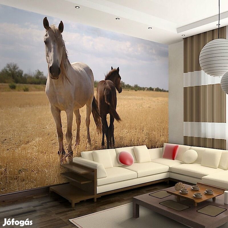 Tartós, víz és karcálló, falra ragasztható "Ló és csikó" flíz fotótapéta. Az inspiráló motívummal ellátott Ló és csikó című fotótapéta hatásosan díszít minden helyiséget. A flíz tapéták ragasztással kerülnek rögzítésre. Minden helyiségben felragasztható, még fürdőszobában vagy konyhában is. Flíz tapéta, fényes bevonat. A 100%-os flíz eltakarja a fal apró egyenetlenségeit. Egy melegítő szigetelő réteget alkot, de lehetővé teszi a fal lélegzését. A vízálló nyomtatás nagyon tartós.