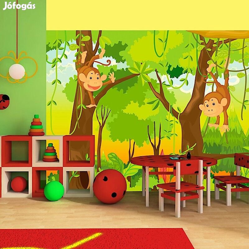 Tartós, víz és karcálló, falra ragasztható "Majmok a dzsungelben" flíz fotótapéta. Az inspiráló motívummal ellátott Majmok a dzsungelben című fotótapéta hatásosan díszít minden helyiséget. A flíz tapéták ragasztással kerülnek rögzítésre. Minden helyiségben felragasztható, még fürdőszobában vagy konyhában is. Flíz tapéta, fényes bevonat. A 100%-os flíz eltakarja a fal apró egyenetlenségeit. Egy melegítő szigetelő réteget alkot, de lehetővé teszi a fal lélegzését. A vízálló nyomtatás nagyon tartós.