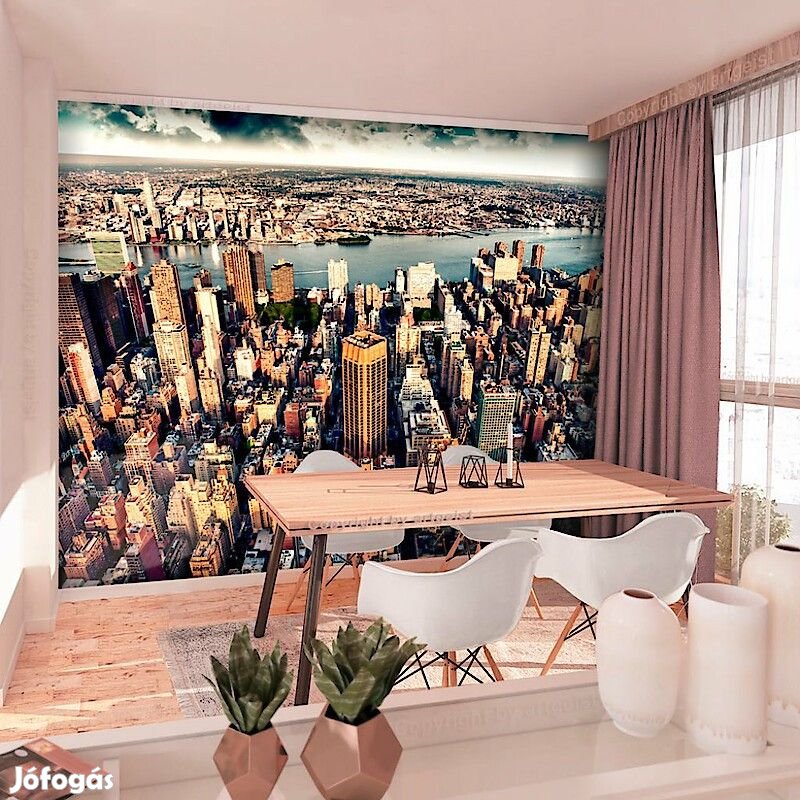 Tartós, víz és karcálló, falra ragasztható "New York egy madár szemszögéből" flíz fotótapéta. Az inspiráló motívummal ellátott "New York egy madár szemszögéből" című fotótapéta hatásosan díszít minden helyiséget. A flíz tapéták ragasztással kerülnek rögzítésre. Minden helyiségben felragasztható, még fürdőszobában vagy konyhában is. Flíz tapéta, fényes bevonat. A 100%-os flíz eltakarja a fal apró egyenetlenségeit. Egy melegítő szigetelő réteget alkot, de lehetővé teszi a fal lélegzését. A vízálló nyomtatás nagyon tartós.