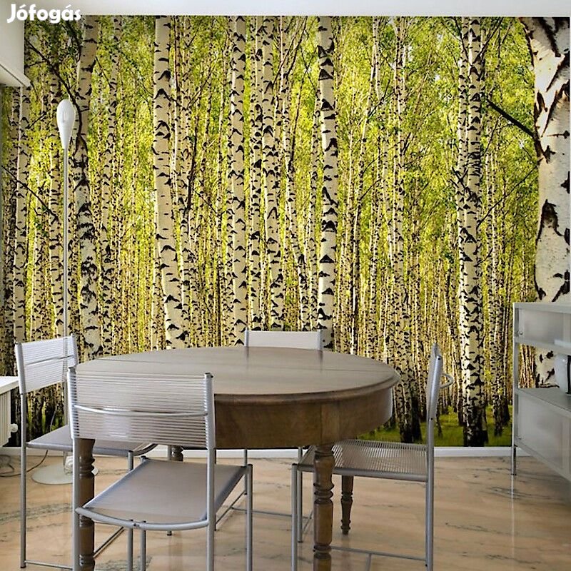 400x309: 50x309 50x309 50x309 50x309 50x309 50x309 50x309 50x309Tartós, víz és karcálló, falra ragasztható " Nyírfák közt" flíz fotótapéta. Az inspiráló motívummal ellátott Nyírfák közt című fotótapéta hatásosan díszít minden helyiséget. A flíz tapéták ragasztással kerülnek rögzítésre. Minden helyiségben felragasztható, még fürdőszobában vagy konyhában is. Flíz tapéta, fényes bevonat. A 100%-os flíz eltakarja a fal apró egyenetlenségeit. Egy melegítő szigetelő réteget alkot, de lehetővé teszi a fal lélegzését. A vízálló nyomtatás nagyon tartós.Magas minőségű nyomtatásAz egyedi technológiájú 600 dpi felbontású digitális nyomtatás, valamint az élénk színek azt eredményezik, hogy a flíz fotótapéta kitölti és megnagyobbítja az Ön házának belsejét.Egyszerű felszerelésA fotótapéta könnyedén rögzíthető, 50 cm-es sávokból rakódik össze.Környezetbarát és biztonságosA biztonságos anyagok használatára való tekintettel mintáinkat a hálószobádba, valamint a gyermekeid szobájába is tudjuk ajánlani.Biztonságos csomagolásA fotótapéta fel van tekerve és gyárilag egy kartontubusba van csomagolva, mely biztonságossá teszi a szállítást. Mindegyik tubus tartalmazza a felragasztásra vonatkozó utasításokat.Súly: 120 g/m2