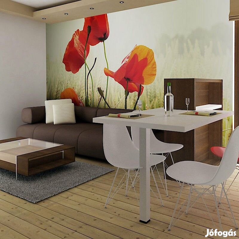 400x309: 50x309 50x309 50x309 50x309 50x309 50x309 50x309 50x309Tartós, víz és karcálló, falra ragasztható "Pipacsok a közelben" flíz fotótapéta. Az inspiráló motívummal ellátott Pipacsok a közelben című fotótapéta hatásosan díszít minden helyiséget. A flíz tapéták ragasztással kerülnek rögzítésre. Minden helyiségben felragasztható, még fürdőszobában vagy konyhában is. Flíz tapéta, fényes bevonat. A 100%-os flíz eltakarja a fal apró egyenetlenségeit. Egy melegítő szigetelő réteget alkot, de lehetővé teszi a fal lélegzését. A vízálló nyomtatás nagyon tartós.Magas minőségű nyomtatásAz egyedi technológiájú 600 dpi felbontású digitális nyomtatás, valamint az élénk színek azt eredményezik, hogy a flíz fotótapéta kitölti és megnagyobbítja az Ön házának belsejét.Egyszerű felszerelésA fotótapéta könnyedén rögzíthető, 50 cm-es sávokból rakódik össze.Környezetbarát és biztonságosA biztonságos anyagok használatára való tekintettel mintáinkat a hálószobádba, valamint a gyermekeid szobájába is tudjuk ajánlani.Biztonságos csomagolásA fotótapéta fel van tekerve és gyárilag egy kartontubusba van csomagolva, mely biztonságossá teszi a szállítást. Mindegyik tubus tartalmazza a felragasztásra vonatkozó utasításokat.Súly: 120 g/m2