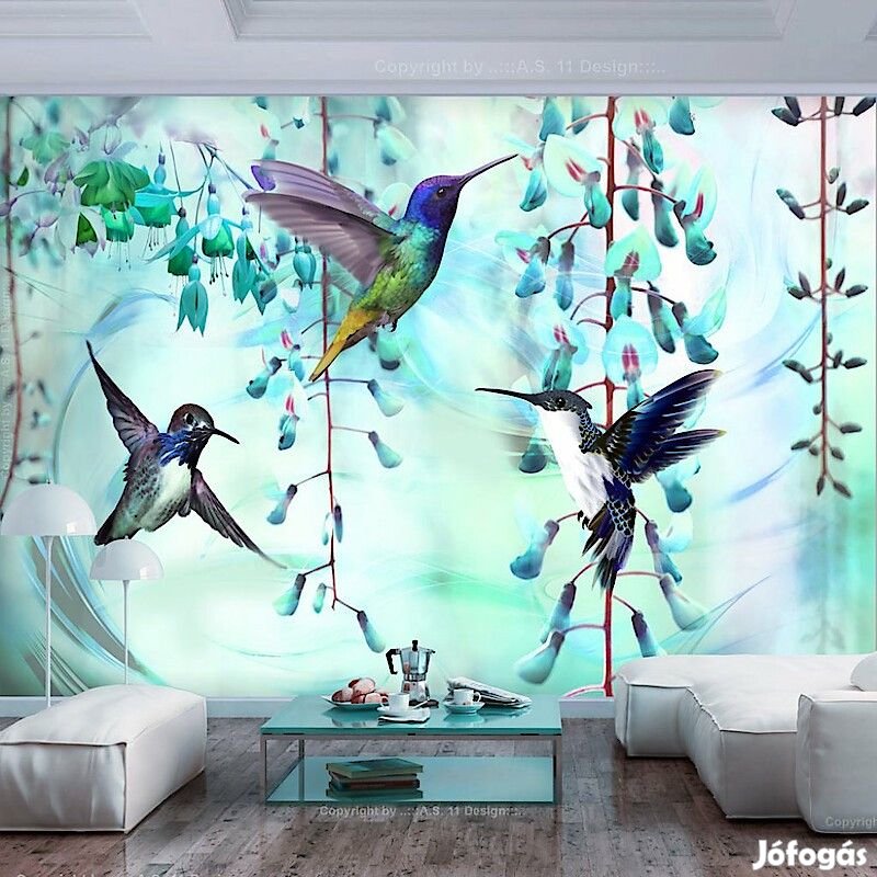 Tartós, víz és karcálló, falra ragasztható "Repülő zöld kolibrik" flíz fotótapéta. Az inspiráló motívummal ellátott "Repülő zöld kolibrik" című fotótapéta hatásosan díszít minden helyiséget. A flíz tapéták ragasztással kerülnek rögzítésre. Minden helyiségben felragasztható, még fürdőszobában vagy konyhában is. Flíz tapéta, fényes bevonat. A 100%-os flíz eltakarja a fal apró egyenetlenségeit. Egy melegítő szigetelő réteget alkot, de lehetővé teszi a fal lélegzését. A vízálló nyomtatás nagyon tartós.