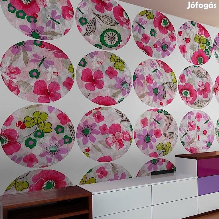 Tartós, víz és karcálló, falra ragasztható "Rózsaszín mezők - körökben" flíz fotótapéta. Az inspiráló motívummal ellátott Rózsaszín mezők - körökben című fotótapéta hatásosan díszít minden helyiséget. A flíz tapéták ragasztással kerülnek rögzítésre. Minden helyiségben felragasztható, még fürdőszobában vagy konyhában is. Flíz tapéta, fényes bevonat. A 100%-os flíz eltakarja a fal apró egyenetlenségeit. Egy melegítő szigetelő réteget alkot, de lehetővé teszi a fal lélegzését. A vízálló nyomtatás nagyon tartós.Magas minőségű nyomtatásAz egyedi technológiájú 600 dpi felbontású digitális nyomtatás, valamint az élénk színek azt eredményezik, hogy a flíz fotótapéta kitölti és megnagyobbítja az Ön házának belsejét.Egyszerű felszerelésA fotótapéta könnyedén rögzíthető, 50 cm-es sávokból rakódik össze.Környezetbarát és biztonságosA biztonságos anyagok használatára való tekintettel mintáinkat a hálószobádba, valamint a gyermekeid szobájába is tudjuk ajánlani.Biztonságos csomagolásA fotótapéta fel van tekerve és gyárilag egy kartontubusba van csomagolva, mely biztonságossá teszi a szállítást. Mindegyik tubus tartalmazza a felragasztásra vonatkozó utasításokat.Súly: 120 g/m2